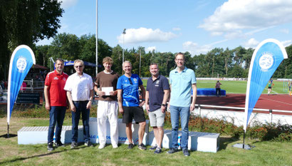 Im Rahmen der Ems-Vechte Kreismeisterschaften am 06. September 2025 im Sportpark Dörpen wurde unser Athlet Micah Schade (U18, LG Emstal Dörpen) offiziell geehrt.